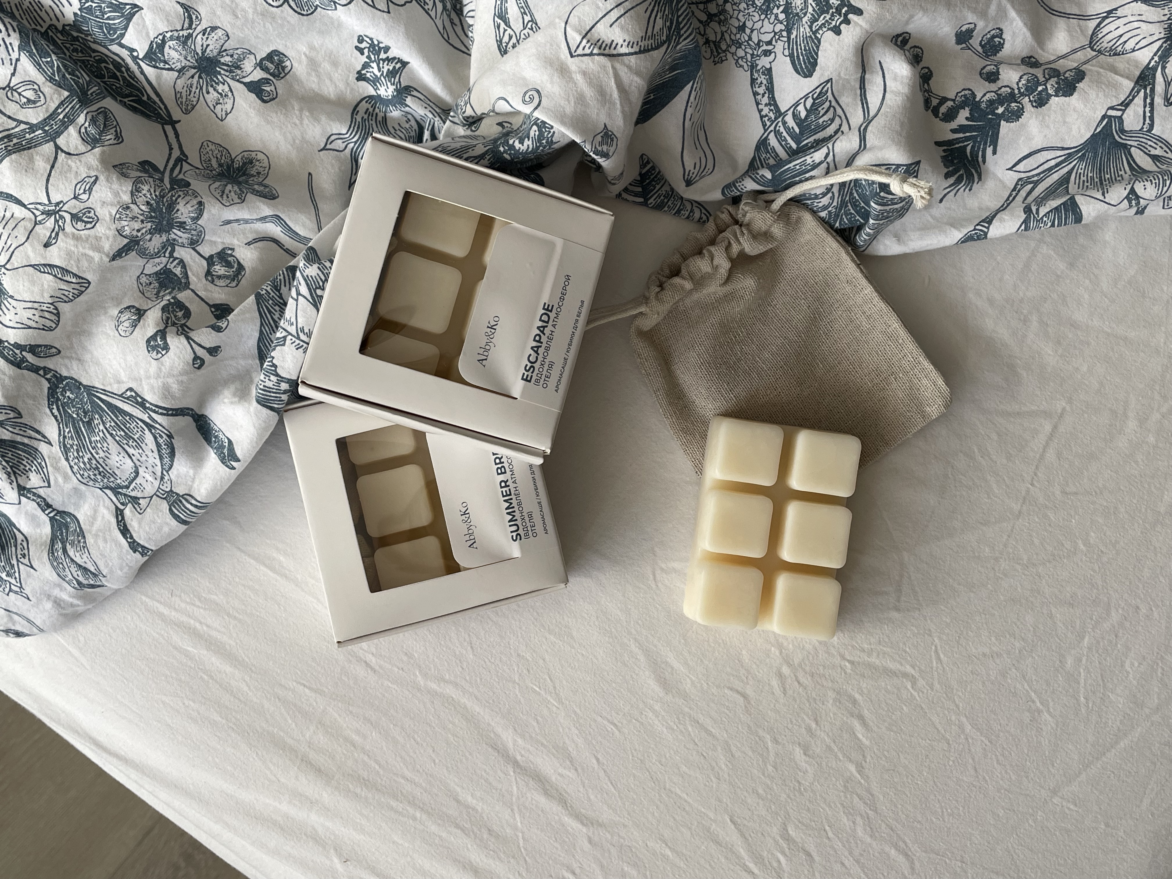 Состав набора: 3 контейнера по 80 гр (6 кубиков в каждом), 3 льняных мешочка под каждый аромат