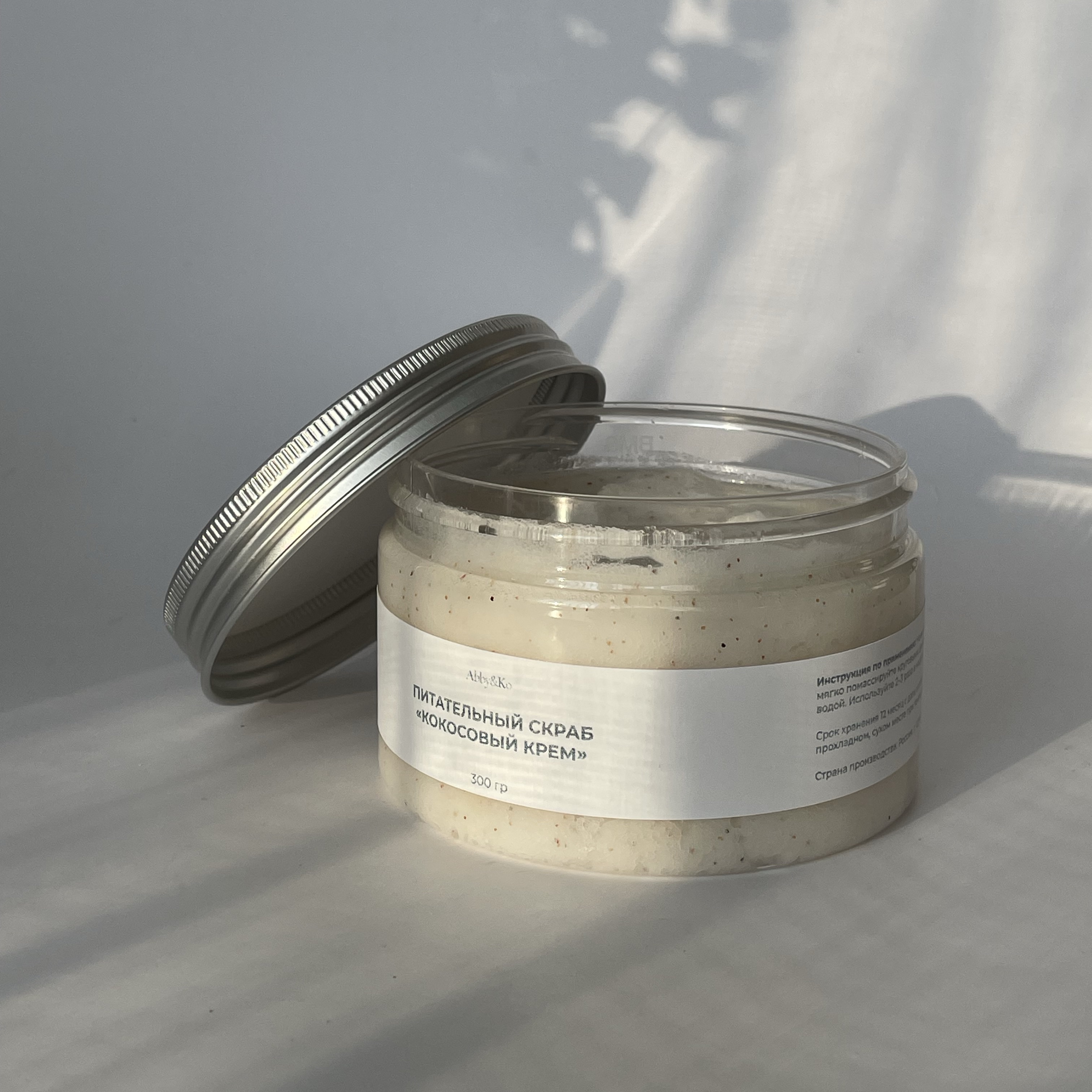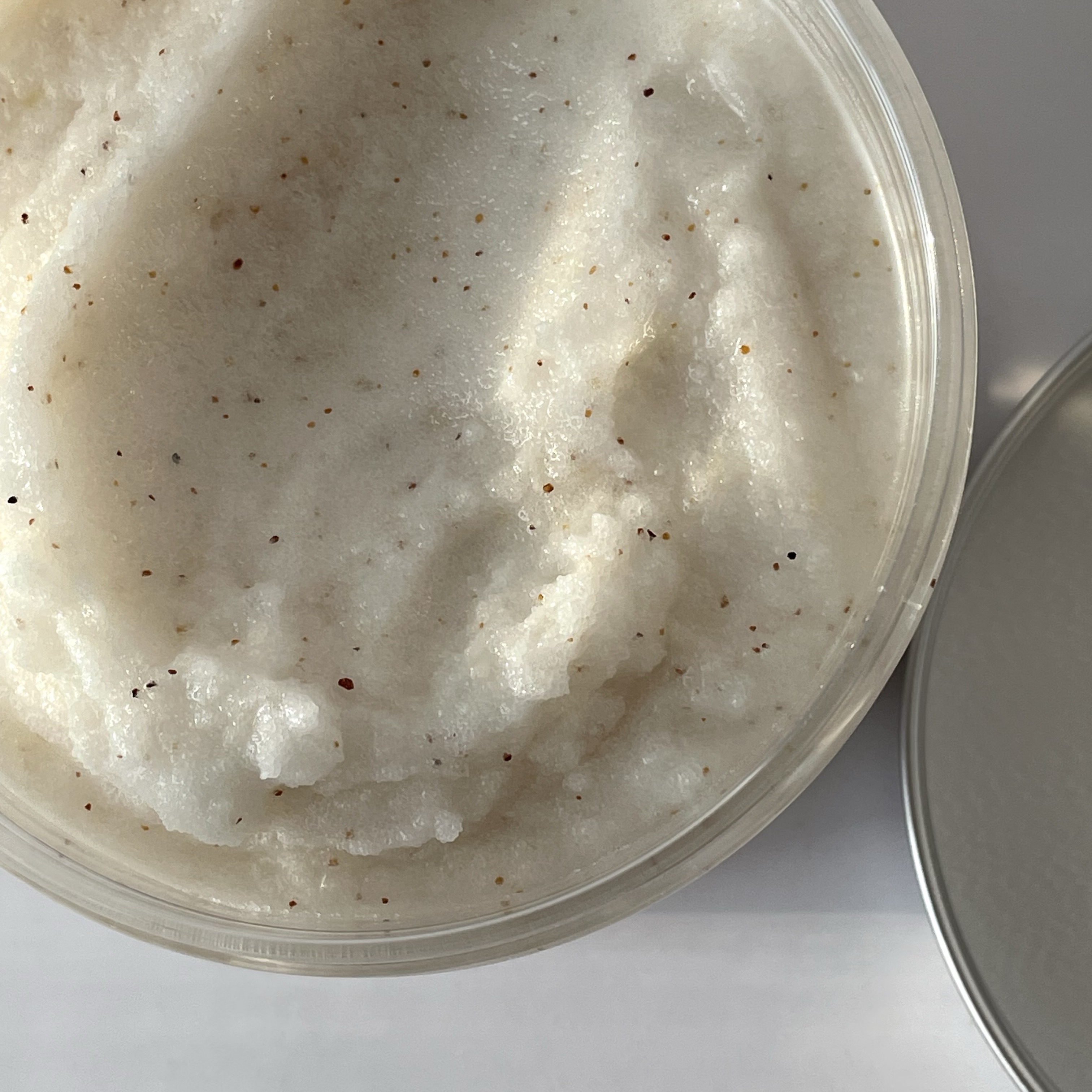Погрузитесь в настоящее удовольствие с нашим скрабом для тела Кокосовый крем — он пахнет так, будто вы только что испекли кокосовый десерт и решили побаловать им свою кожу.